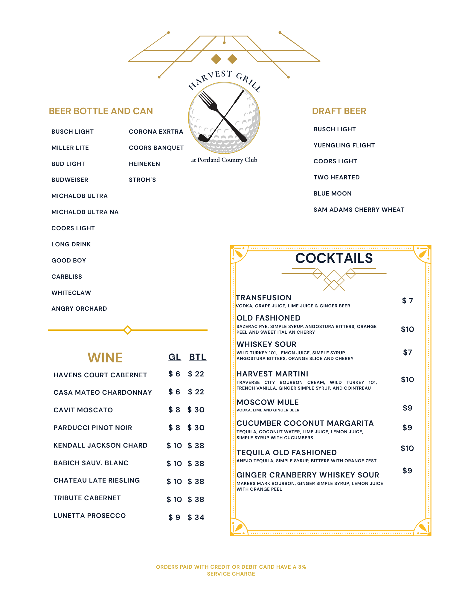 Whether you're looking for a hearty meal before your round, a satisfying lunch after 18 holes, or a casual dinner with friends and family, the Harvest Grill delivers quality food and exceptional service. Our menu features classic American favorites, fresh seasonal selections, and specials that showcase local farm fresh ingredients.
